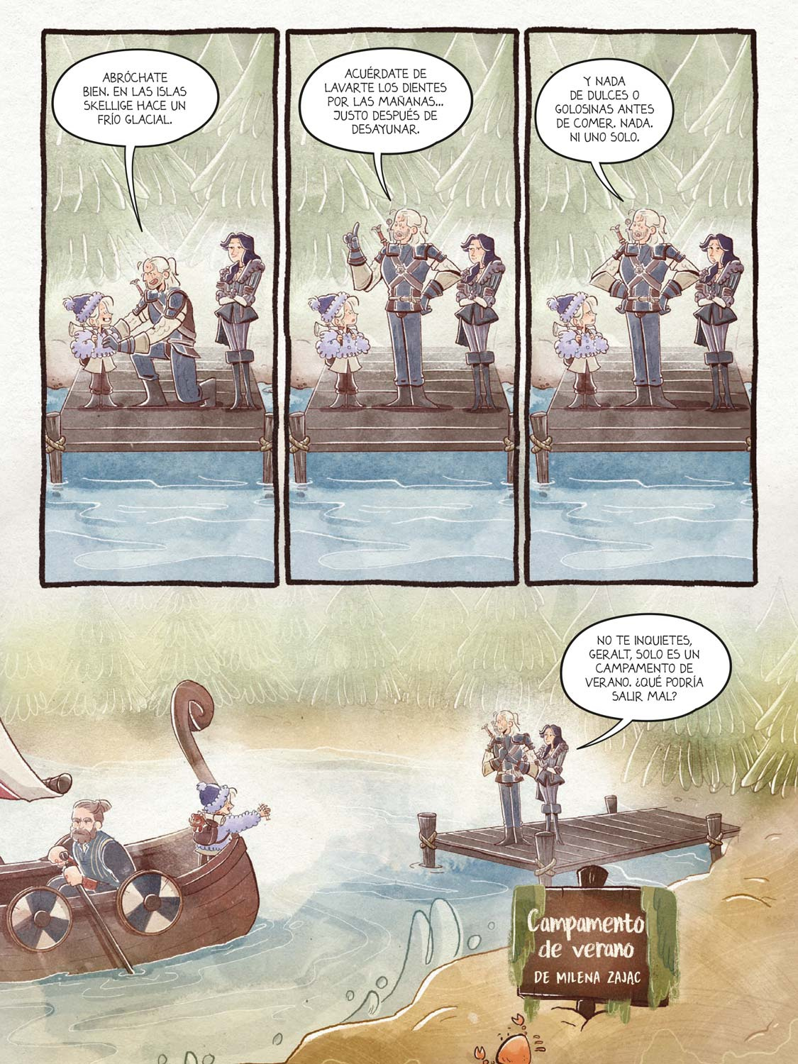 Abre este libro y espía pequeños momentos de la vida cotidiana de Geralt de Rivia y su familia, donde no todo es cazar monstruos y conseguir recompensas… ¡A veces es mucho más complicado criar a una niña para que sea buena persona!