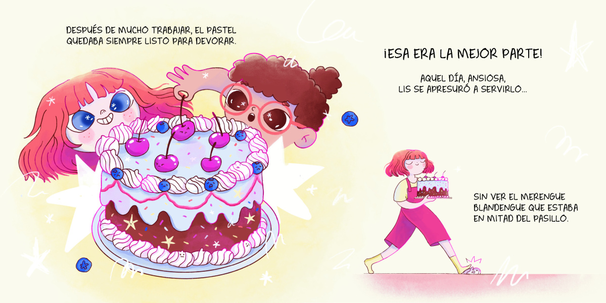 Lis y su mejor amiga están haciendo un pastel maravilloso cuando de pronto, ¡PUM! Lis se tropieza y se cae, destrozándolo todo. La vergüenza que le da haber creado tal desastre por ser tan golosa hace que salga huyendo sin dejar de llorar… Y entonces, de sus lágrimas aparece una criatura dispuesta a rescatarla: Ayuno, que le dice que la manera de solucionar estas cosas en el futuro es dejar de comer. Al final, sin gula no hay desastres, ¿verdad?